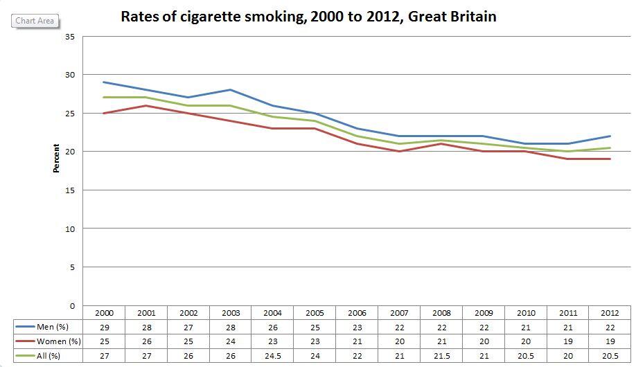 As for the "decline in smoking": No - smoking in GB has not declined since the smoking ban in 2007: