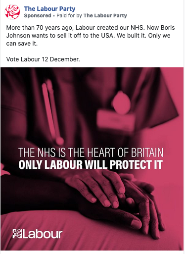 NHS (with claim that 'Boris Johnson wants to sell it off to the US')